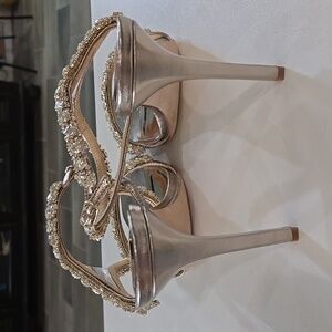 Badgley Mischka Galia Crystal Ankle Strap Evening Bridal Strappy Heels Size 10