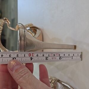 Step out in style with these elegant gold strappy heels. Perfect for any occasion, these shoes offer both comfort and glamour.