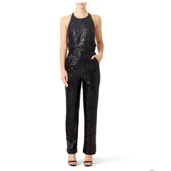 With a slight drape, this shimmering Badgley Mischka jumpsuit is waist-flattering and chic. Pair the disco-nostalgic look with chunky heels.