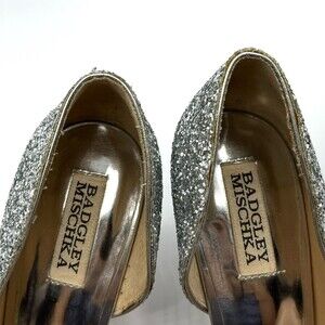 Badgley Mischka Glitter Daisy II Heels Women’s Size 6 Silver Wedding Stiletto Pu