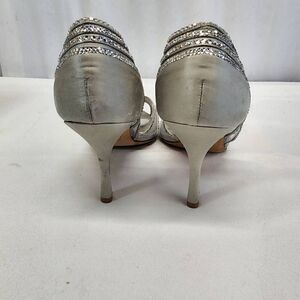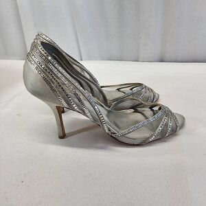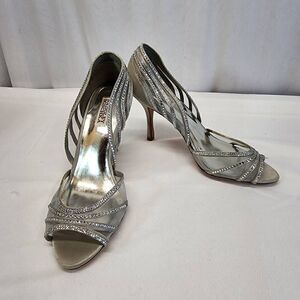 Badgley Mischka Glynn Evening Gown Silver Rhinestone heels Size 10