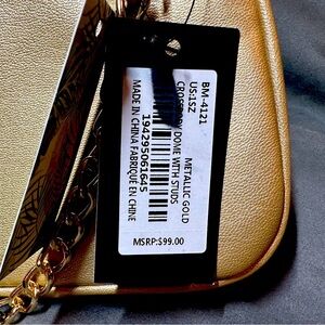 Elegant gold Badgley Mischka quilted handbag with a stylish design. Perfect for any occasion.