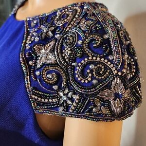 Badgley Mischka Gown - Beaded Cap Sleeve ultra violet blue. Size 6. NWT