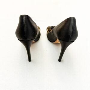 Badgley Mischka Gray Flower Peep Toe Pump Heel Leather Sole Size 7