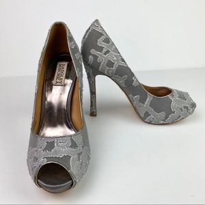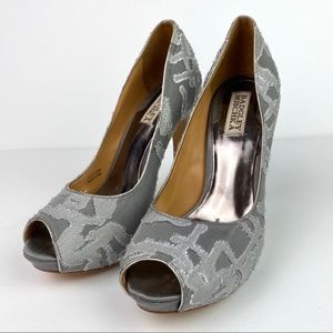 Badgley Mischka | Gray Silver Roxie Platform Pumps 8M