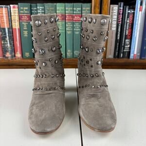 Badgley Mischka Gray Suede Studded Ankle Boot 10 Designer Luxury MSRP $325