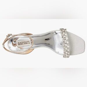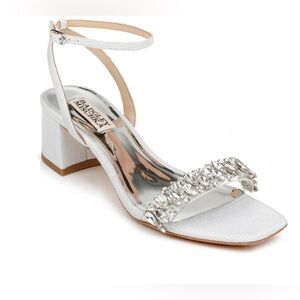 Crystals bring glamorous sparkle and shine to the strap of an event-ready sandal lifted by a modest block heel.
