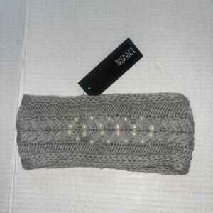 Badgley Mischka Headband Ear Warmer Grey Pearls Cable Knit Fancy Girlie City NEW