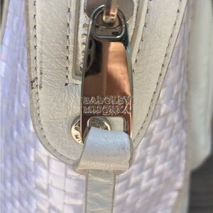 Badgley Mischka Helena Raffia Shine Smooth Leather Tote