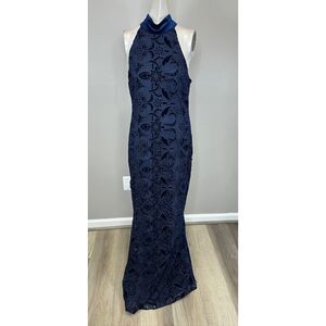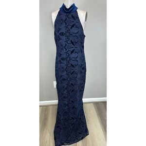 Badgley Mischka High Neck Sleeveless Evening Gown In Navy SIZE US 10 $915