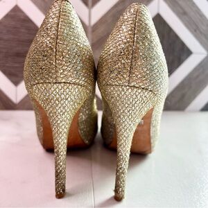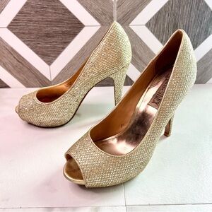 Badgley Mischka Humbie II Gold Glitter Sparkle Peep toe Platform size 7.5