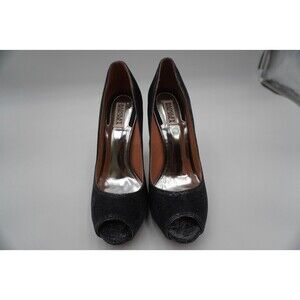 Pre-owned Badgley Mischka Humbie IV Peep-Toe Shimmering Grey/Plum Color Leather Sole 10M. These stunning grey peep-toe heels feature a high stiletto design, perfect for adding a touch of elegance to any outfit. The shoes boast a slight platform for added comfort and a textured finish for a chic look.