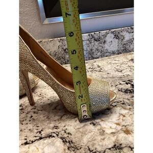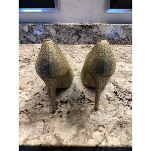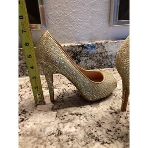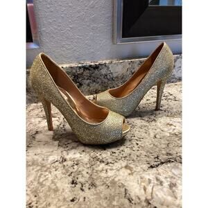 Badgley Mischka Humbie peep toe Pump 7.5 Gold Glitter Platfrom Heels Slip on