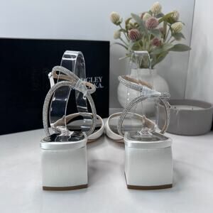 Badgley Mischka Infinity Block Heel Evening Sandals Soft White Women's US 11 NWB