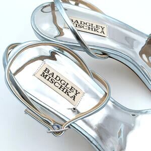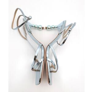 Badgley Mischka Ivette Pearl Heel Evening Sandals Women's Blue Size US8M EU39