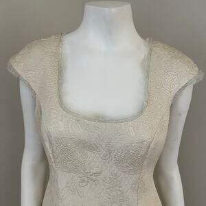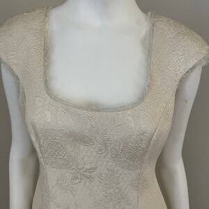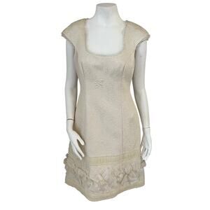 Badgley Mischka Ivory Embroidered Quilted Evening Cocktail Sheath Dress US 6