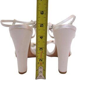 Badgley Mischka Ivory Satin High Heel Sandals With Rhinestone Detail Size 8.5