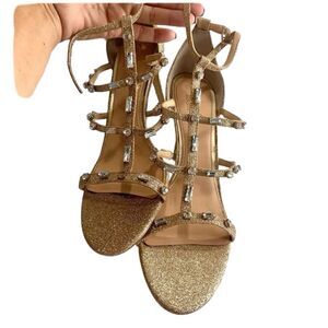 Badgley Mischka hJewel Adela embellished strappy evening gold sandals size 10