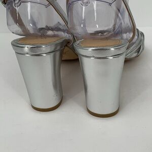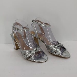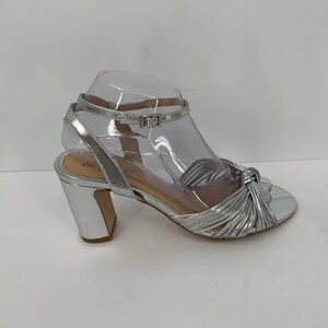 Badgley Mischka Jewel Christen silver metallic sandal ankle strap block heel 7.5