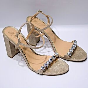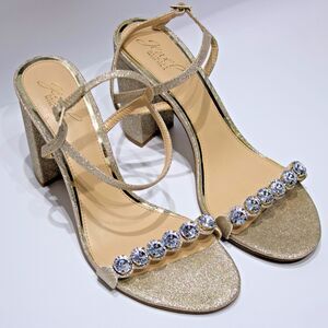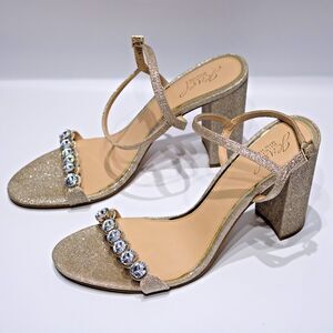 Badgley Mischka Jewel Gold Glitter Bejeweled 4" Heel Sandals Women's Size 11