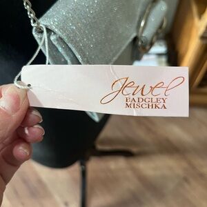 Gorgeous silver sparkly evening bag with silver tone hardware. Wear as a crossbody or carry as a clutch.