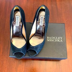 Badgley Mischka Kassidy ll black peep toe 4 1/2” heels Size 9