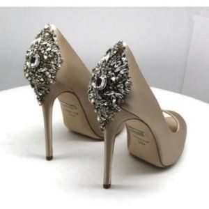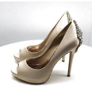 Badgley Mischka Kiara Embellished Peep-Toe Evening Pumps(size 8.5)