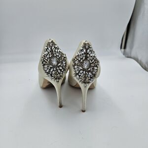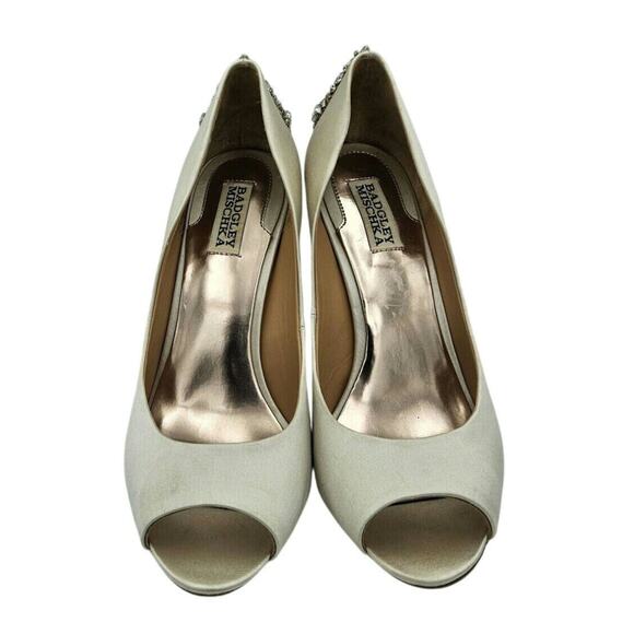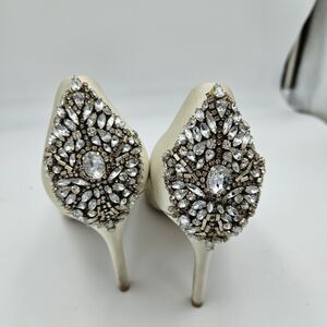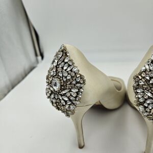 Badgley Mischka Kiara Satin Crystal Open Toe Heels US 9 Bridal Wedding