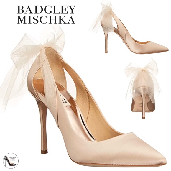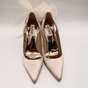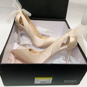 Badgley Mischka Kinsley Tulle Bow Detail Pumps Nude Stiletto Heel Evening Shoes