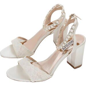 Badgley Mischka Koko Pearl Rhinestone Block Heel Dress Sandals Women's US 7.5
