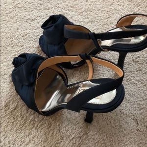 Never worn, box included with purchase. Size 7. Navy slingbacks with rosette detail. Ended up wearing another shoe. No longer fit.