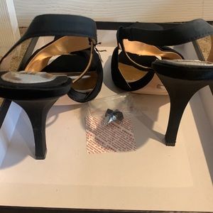 Badgley Mischka Lanah evening shoe. Worn twice and in excellent condition. Comes with high heel tip replacement. Comes in original box with dust bag.