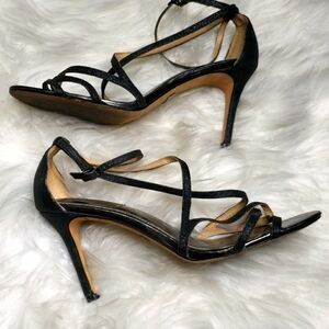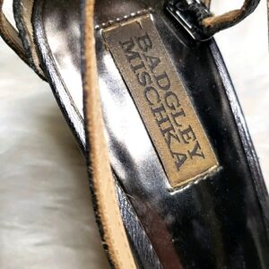 Badgley Mischka landmark Black (almost a gunmetal color) Glitter Sparkle Ankle Strap Heel Sandals Size 9