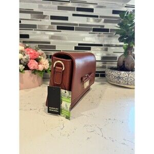 The Badgley Mischka Leather Crossbody Bag with Bow and Logo Detail is a stylish and designer handbag for women. Made from brown leather with gold hardware accents, this rectangular shape bag features a bow detail and a zip closure. It comes with a detachable crossbody strap for convenience and a fabric lining for durability. This fashion-forward bag is perfect for any occasion and adds a touch of luxury to any outfit. Made in China, this quilted finish bag showcases the iconic Badgley Mischka logo.