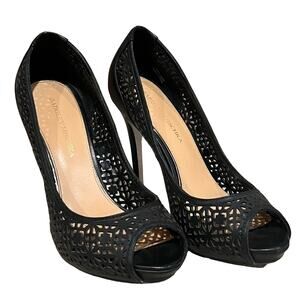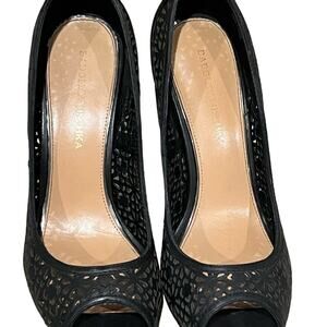 Badgley Mischka Leather Lasercut Accents Black Pumps Size 8.5 M