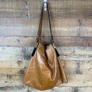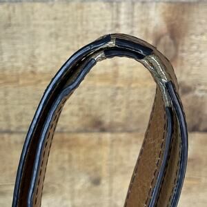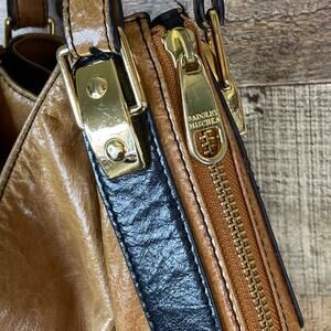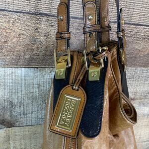 Badgley Mischka Lena Two Tone Cognac Black Zipper Side Large Tote Bag Purse