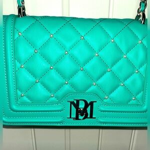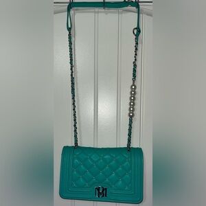 Badgley Mischka Green Letter Lock Crossbody w/Bombe and Pearls on Strap & Cover
