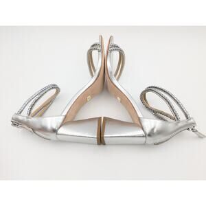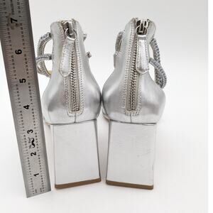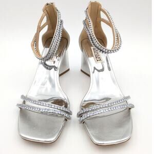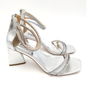 Badgley Mischka Lillie Women's Crystal Dual-Strapped Block Heels Silver Size 8