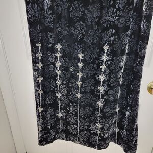 Exquisite and unique Badgley Mischka Long Formal Evening Gown. Beaded flowers and Burnout floral black Velvet. Lined. Fairy whimsygoth goth witchy aesthetics. Measures as US size 12.