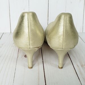 Badgley Mischka Low Heel Bejeweled Leather Peep Toe Shoes