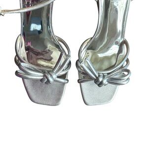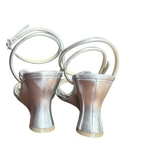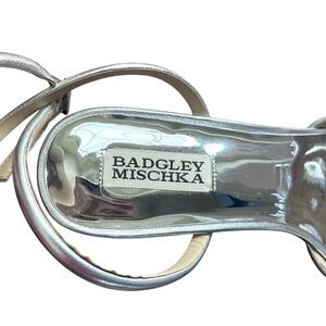 Badgley Mischka Luciana Wedge Sandal Sz 7.5 Knot Detail Silver Metallic Leather