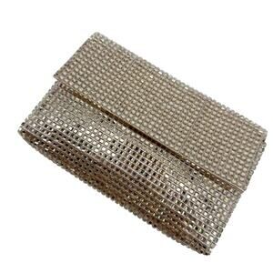 Badgley Mischka Maria Allover Crystal Envelope Clutch Gold Jeweled Evening Party