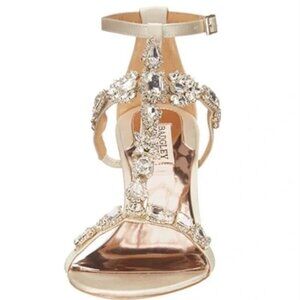 By Badgley Mischka a stunning embellished wedge perfectly poised to add an elegant accent to your ensemble. This shoe features an open toe and ankle straps.