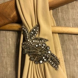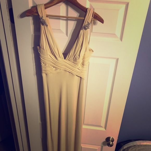 This dress has had some love, but has plenty left to give. I’ve worn it a couple times to various events and I always receive compliments. Quite a few pulls on the inside of the dress - I think it’s from the gems on the front, but the outside looks good. Might need to be cleaned as it has been hiding in my closet for a few years.