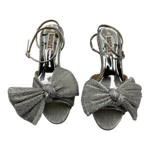 Badgley Mischka Metallic Pleated Bow Kitten Heel Sandals Silver Size 6