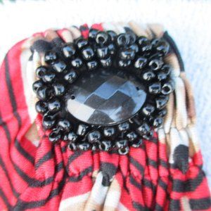 Badgley Mischka Midi 100% Silk Dress Women’s Size 6 Red and Black Abstract Print Beaded Shoulder. Retro style V-Neck with A-Line Faux Belted look with a Side Zip Closure. Absolutely gorgeous!!