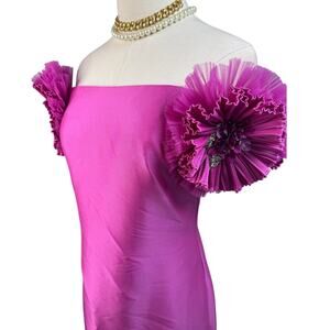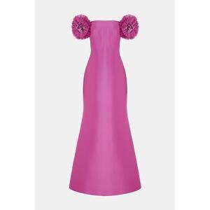 Badgley Mischka Mikado Mermaid Gown Off-Shoulder Pinwheel Flowers pink size 4