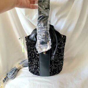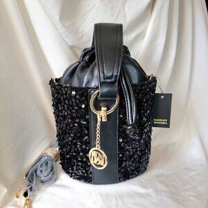 Badgley Mischka NWT Black Sequin Bucket Bag Vegan Leather ~ Non-Smoking Home