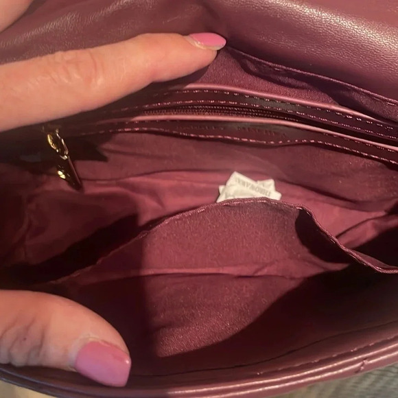 Badgley Mischka NWT Plum Vegan Quited Leather Gold Chain Crossbody Bag