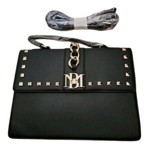 Badgley Mischka NWT monogram Bag black gold hardware studs Vegan leather